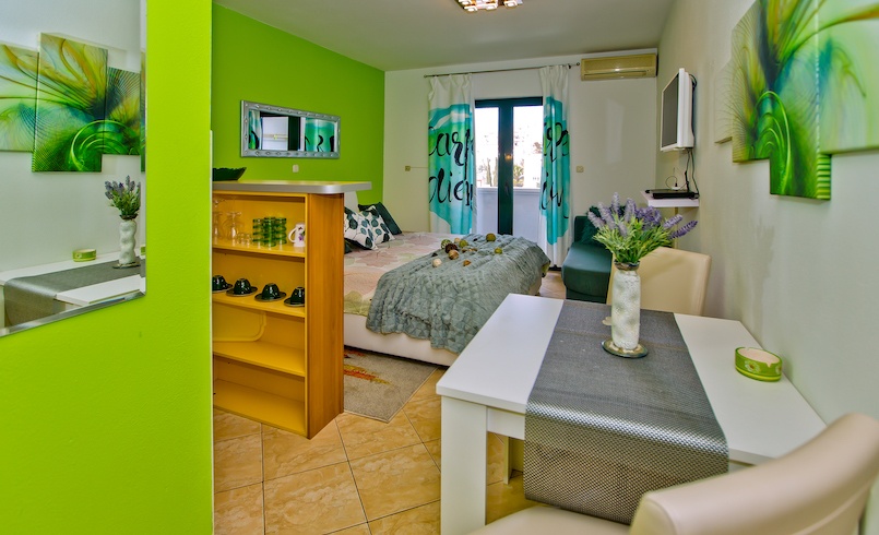 Indulge in the ultimate island escape with our Premium Studio Suite. Located on the first floor, this haven of relaxation boasts captivating views of the shimmering Adriatic Sea and the picturesque town of Hvar. Decorated in calming shades of green, the suite offers a serene atmosphere where you can unwind and reconnect with nature. Step out onto your private balcony and let the gentle sea breeze and stunning vistas wash away your worries.